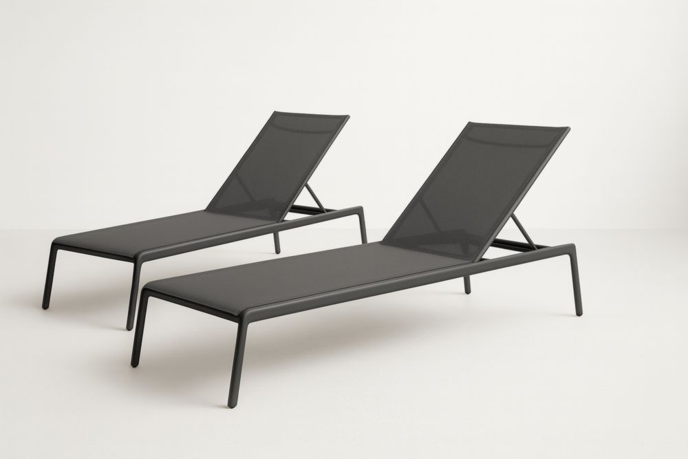 Chaises longues en aluminium et tissu gris