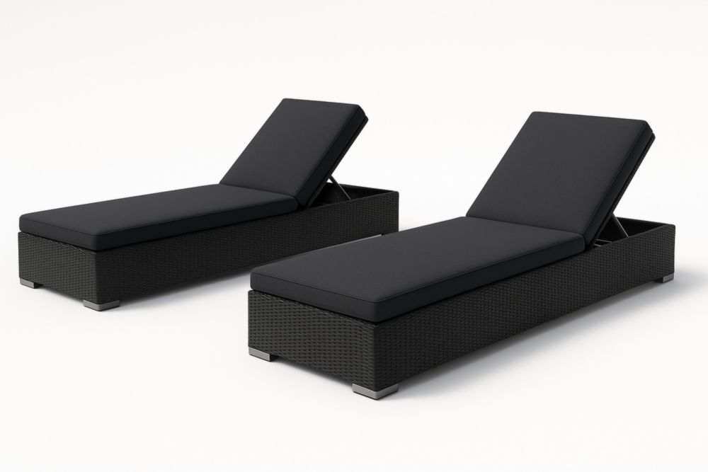 Chaises Longues Extérieures en Résine Tressée Noire Réglables - Lot de 2