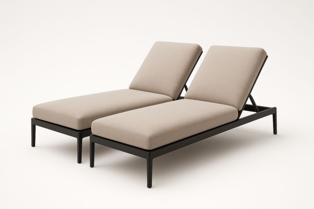 Transat double réglable en aluminium avec coussins en tissu beige